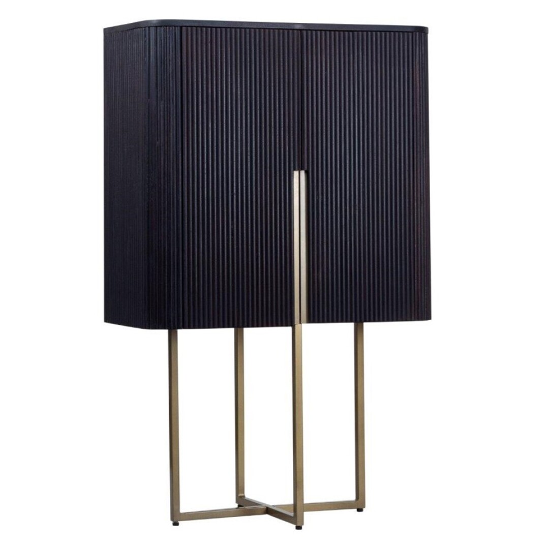 Mueble de dos puertas en madera de mango negro con soporte y tiradores de metal dorado. Medidas 80 x 40 x 125
