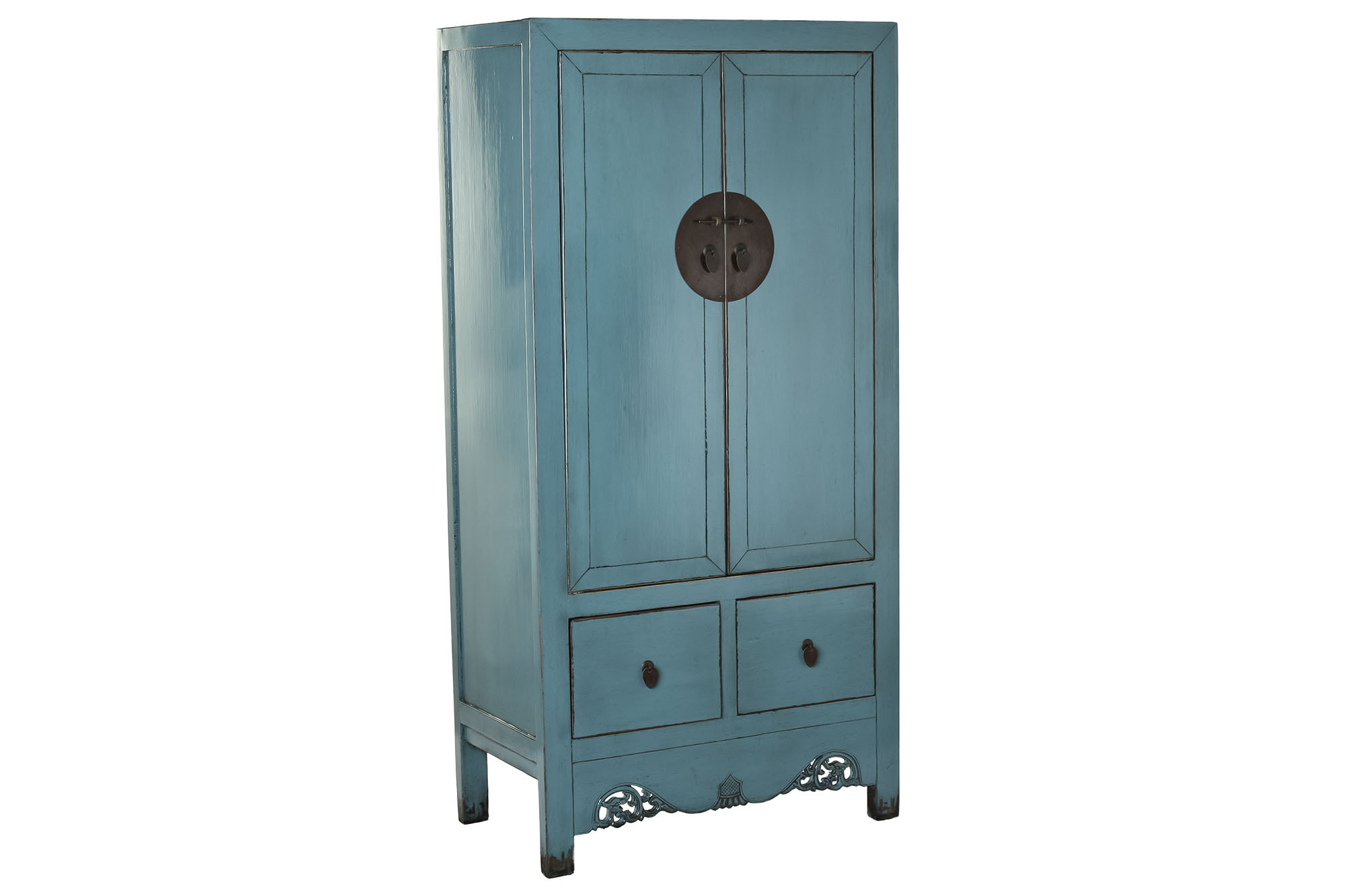 Armario madera de Olmo color turquesa de estilo oriental. Medidas 89 x 52 x180