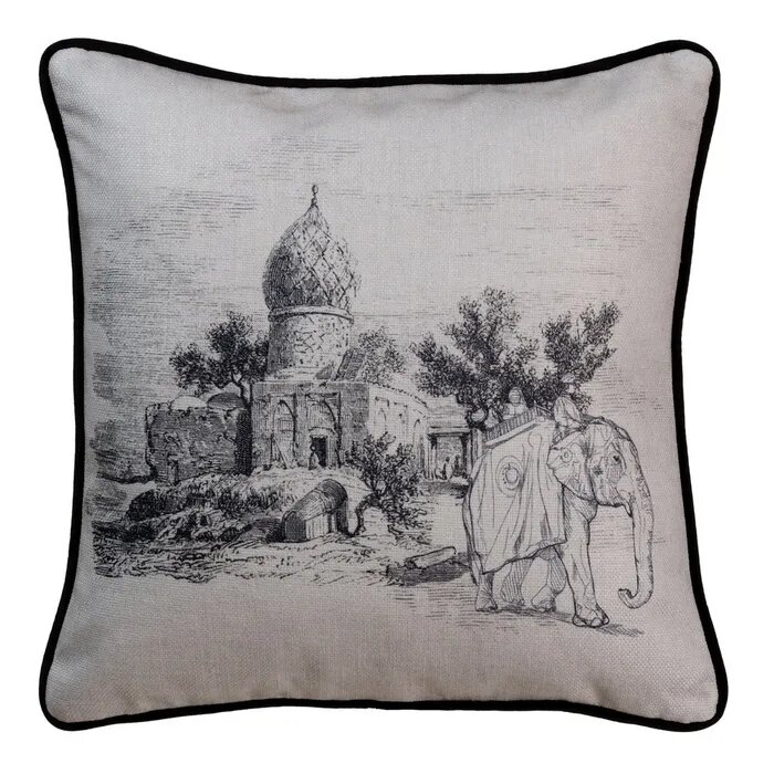 Cojín con palacio 100% poliéster y ribete negro en terciopelo. 45 X45 / 30 X 45