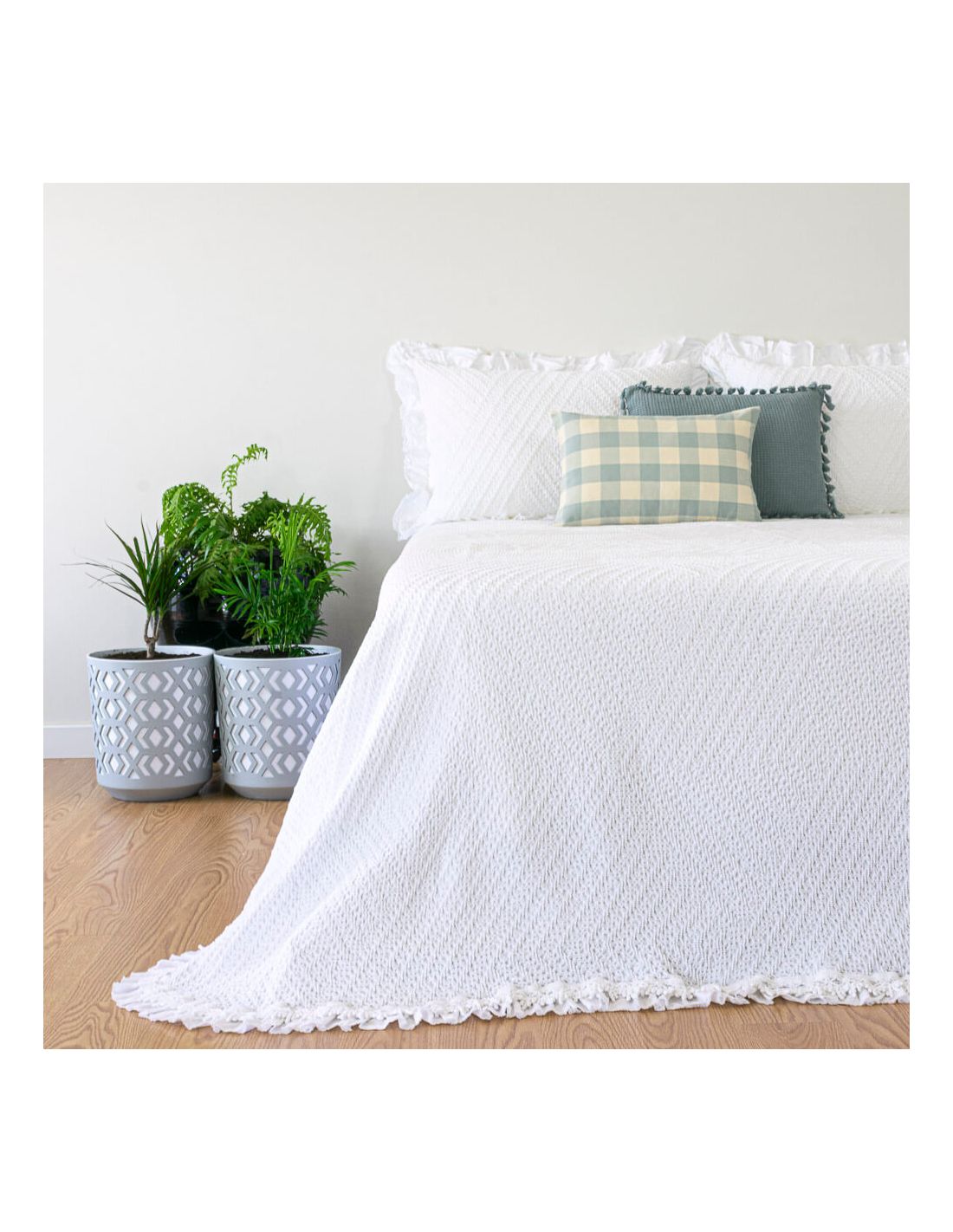 Colcha modelo Esperanza en tejido 100% algodón prelavado, no se arruga. Acabado con volantes. DISPONIBLE EN VARIOS COLORES Y MEDIDAS.