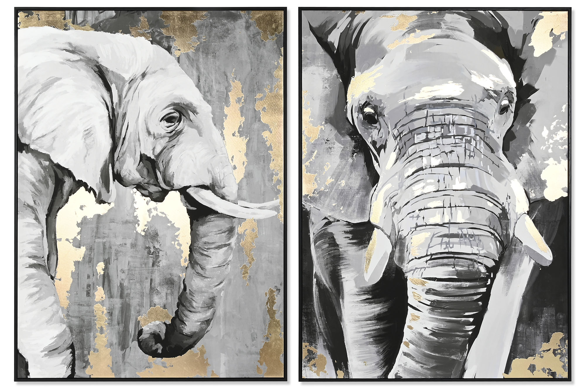 Cuadro sobre lienzo elefantes, con marco de madera negro. Medidas 100 x 140