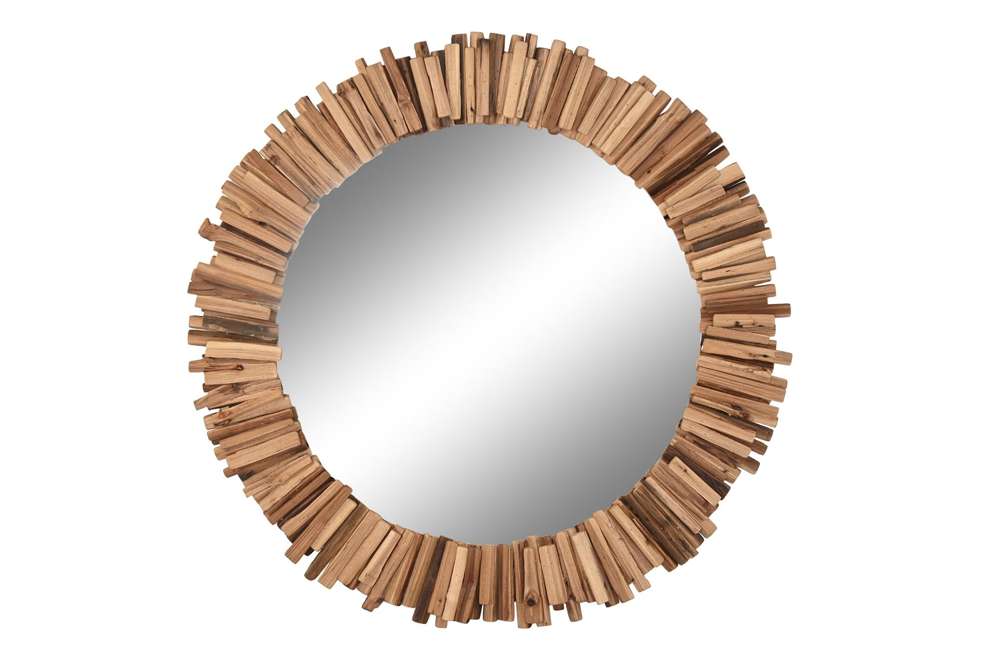 Espejo con contorno de madera de abeto, troncos envejecidos. Medidas 112 x 4 x 112