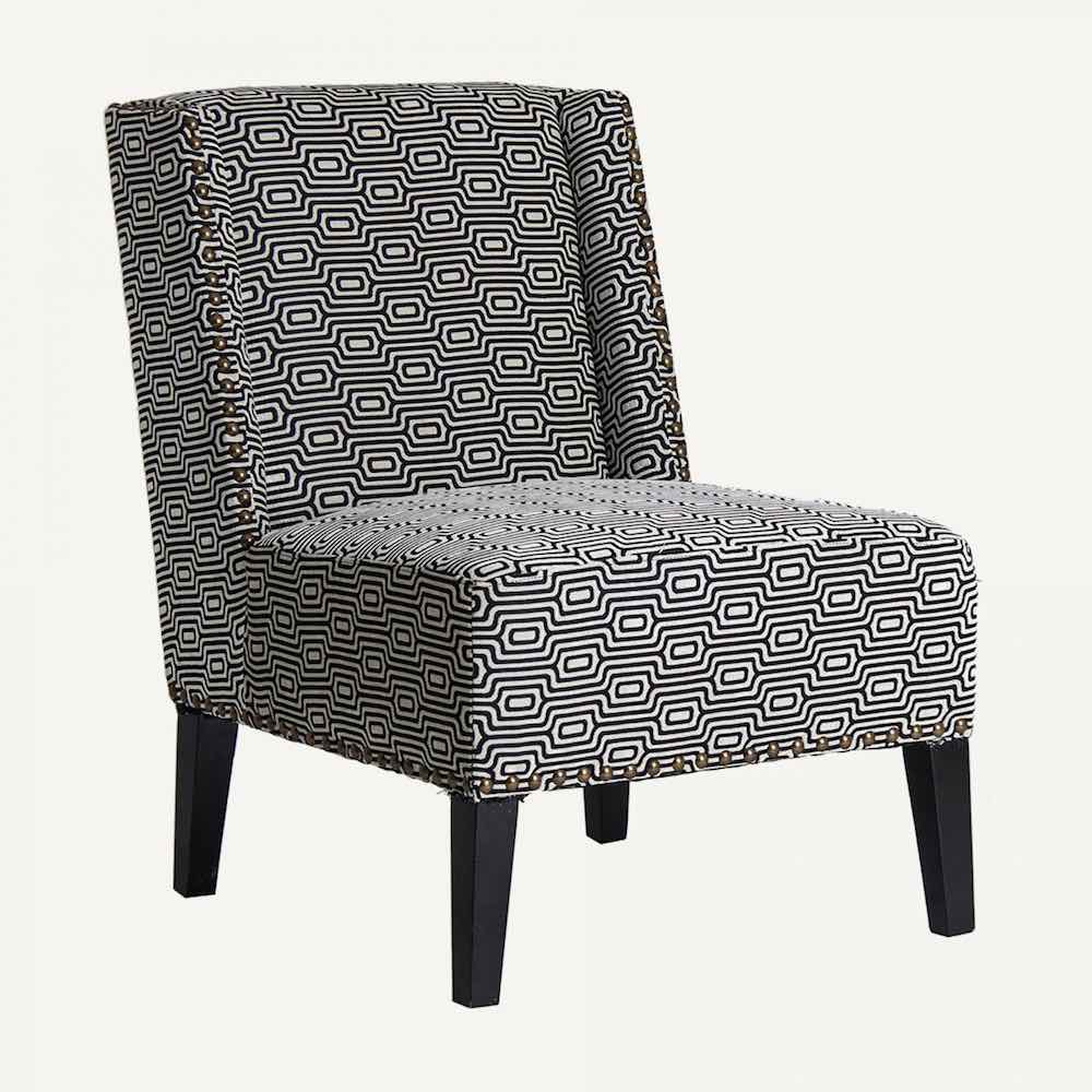 Sillón Enna en color blanco y negro con estampados geométricos de estilo contemporáneo. Medidas 59 x 76 x 82